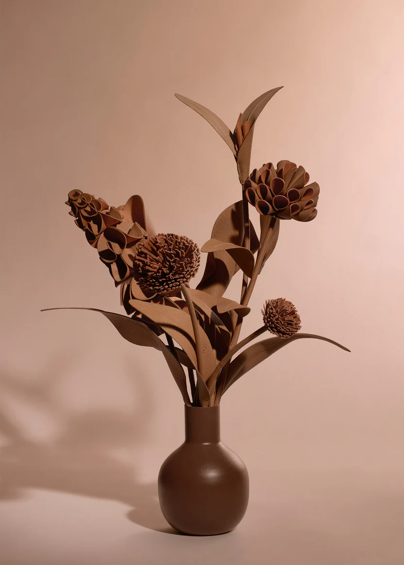 Polène has drawn inspiration from the phenomenon of blossoming, which signals a flourishing and protected natural world, to design everlasting flowers made from leather off-cuts.